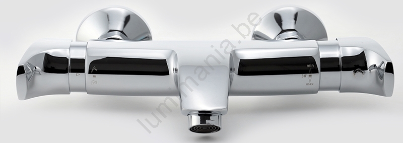• Thermostaat aan de rechterzijde, debietregeling aan de linkerkant.