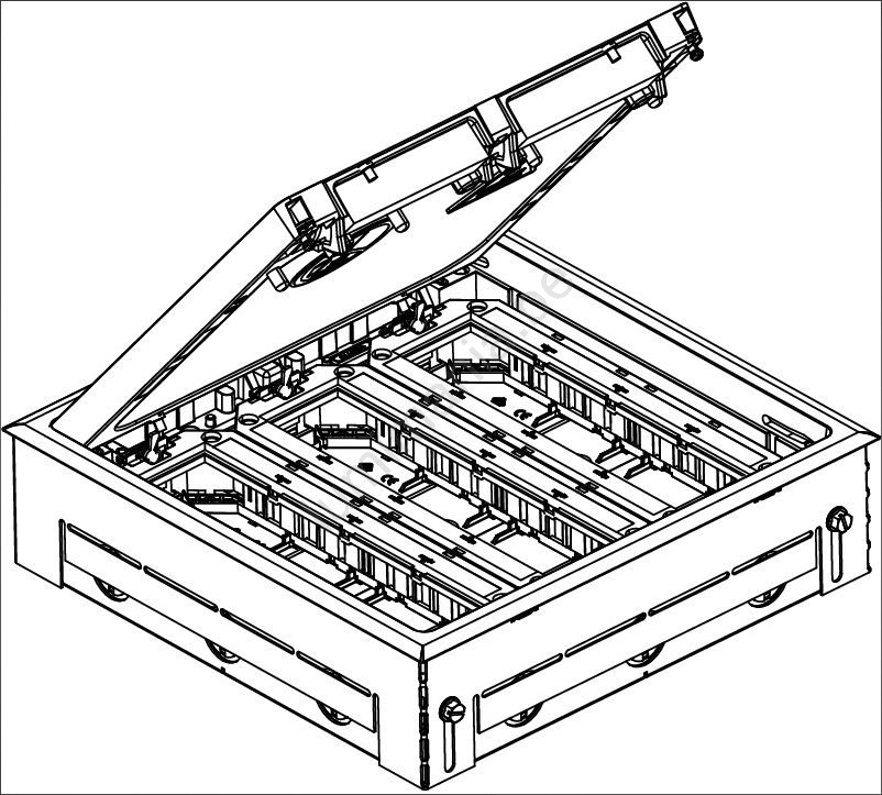 • Vierkante doos met apparaatunit GES9 voor gebruik in de dekvloeren.