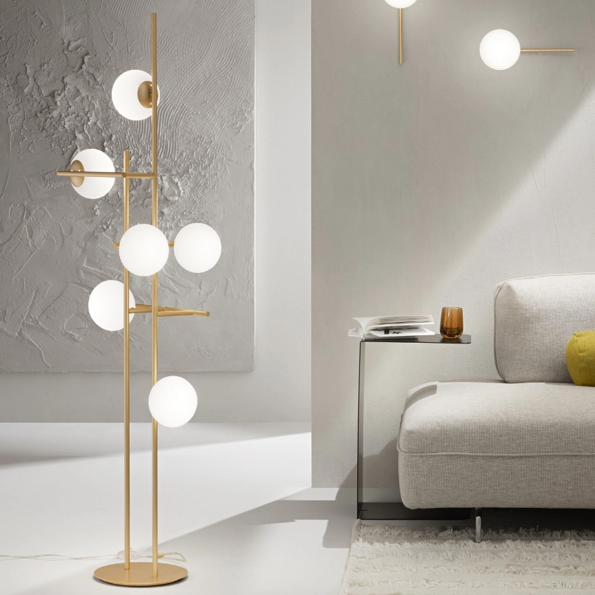 Ondaluce - Vloerlamp JEWEL 6xE14/10W/230V 166 cm goud/wit kenmerkt een mooi en functioneel ontwerp.  Voor het licht is een lamp met E14 fitting geschikt. Hier kunt u andere lampen tegen voordelige prijzen kopen. U heeft een interessante aanwinst voor uw woning.