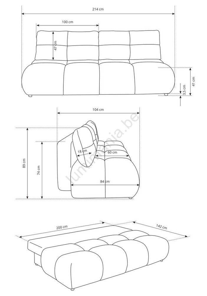 • De bank beschikt over een ruime opbergbox voor het opbergen van bedlinnen.