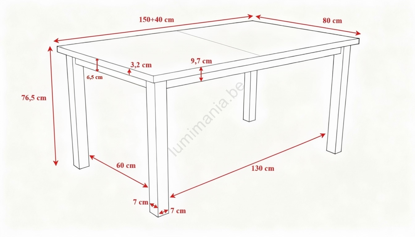 • Afmetingen van de tafel uitgeklapt: 190 x 80 cm.