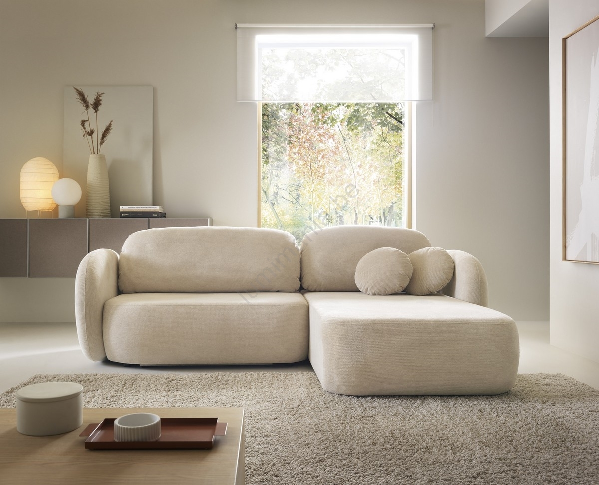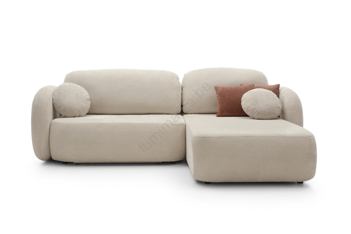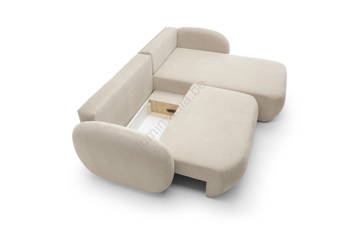 • L-vormige hoekbank met slaapfunctie en opbergruimte OLBIA, rechts, beige