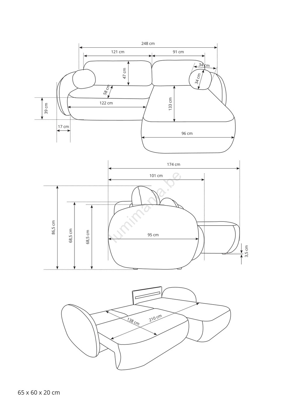 • Doos nr. 3: 63 x 98 x 70 cm (23,5 kg).