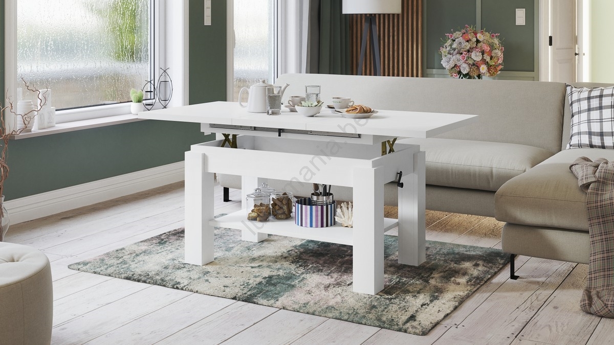 • Uitschuifbare salontafel/eettafel met plank ADONIS wit