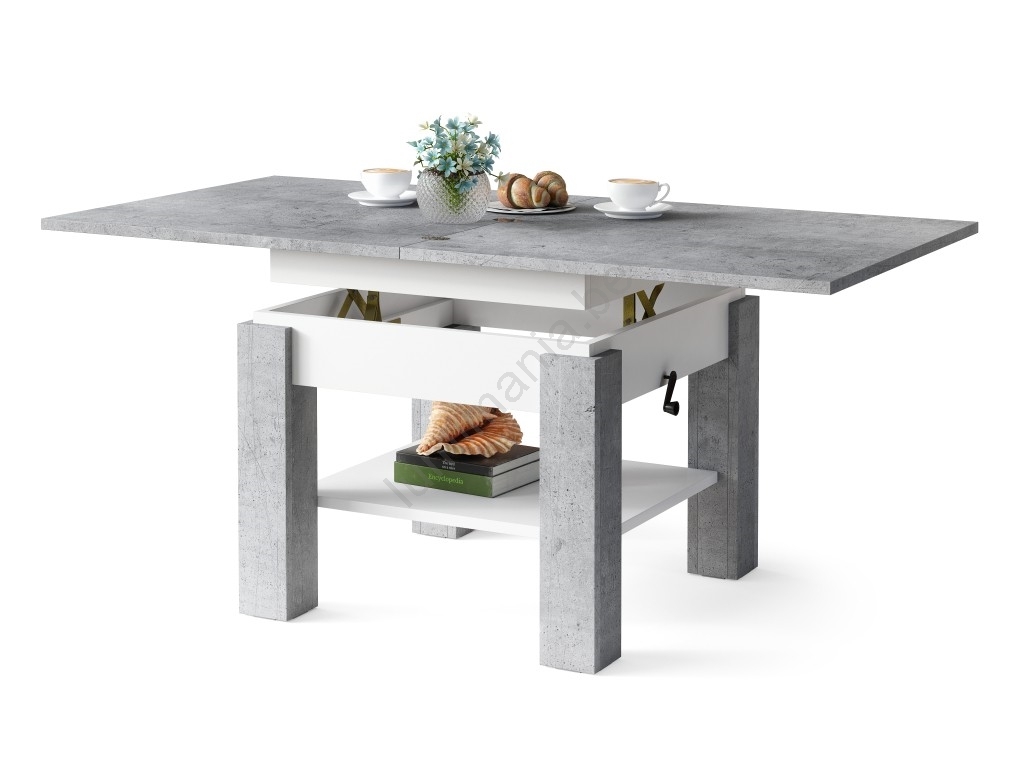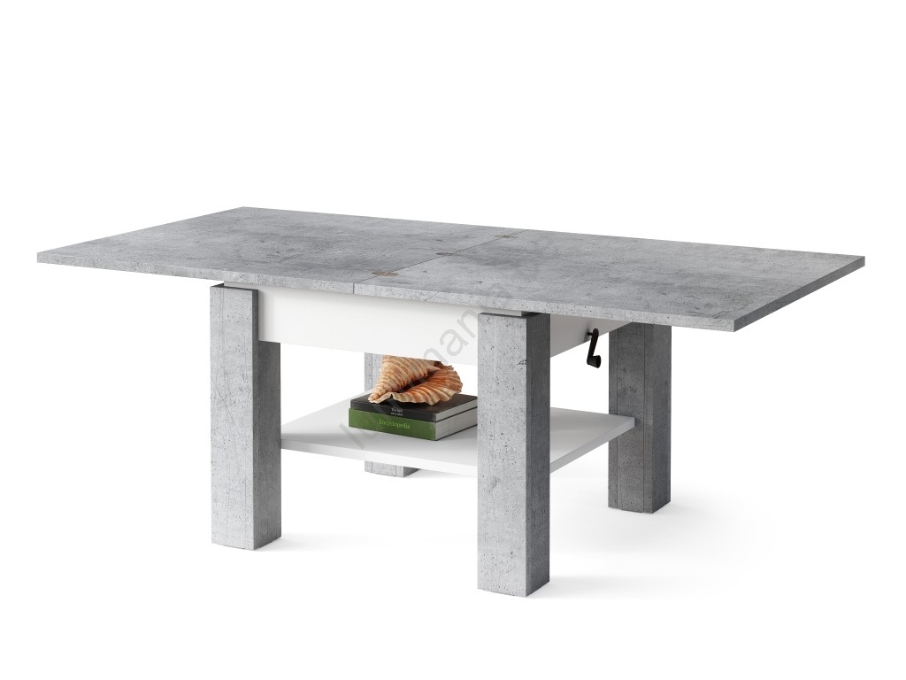 • Uitschuifbare salontafel/eettafel met hefblad CALEB betongrijs/wit
