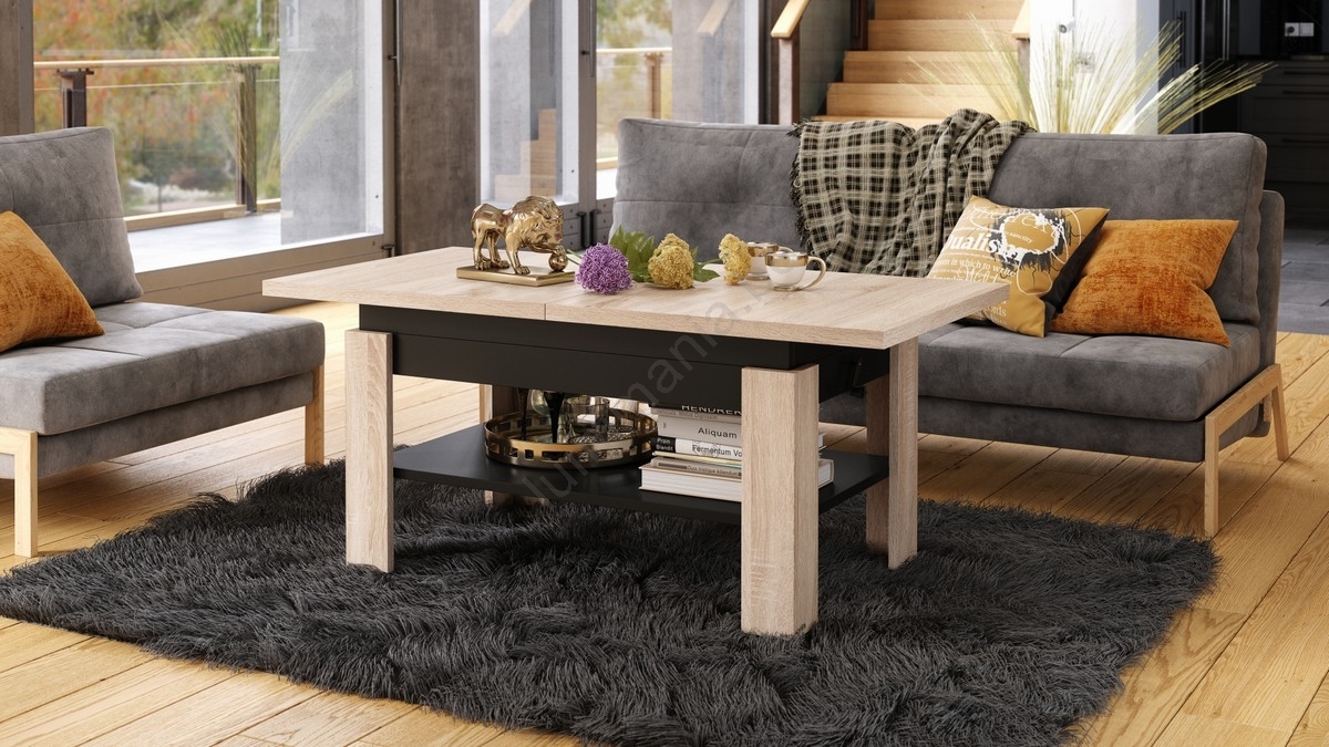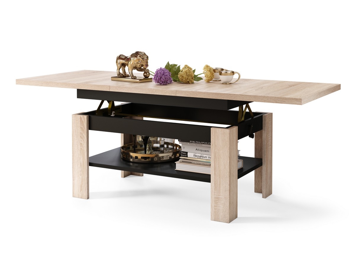 Uitschuifbare salontafel/eettafel met hefblad ROY Sonoma eik/zwart
