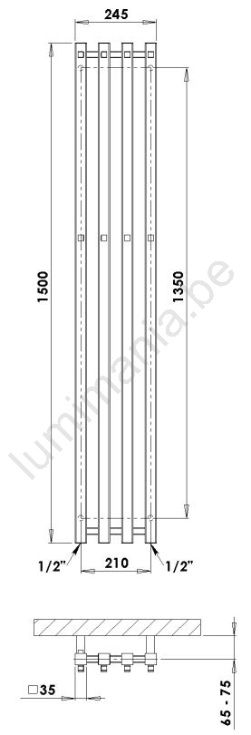 • De radiator is uitgerust met vierkante haken in twee rijen voor het eenvoudig ophangen van handdoeken.