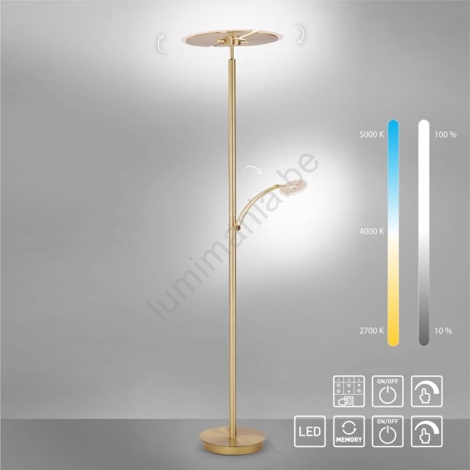 Paul Neuhaus 673-60 - Dimbare Staande LED Lamp ARTUR 2xLED/21W/230V+1xLED/6W goud