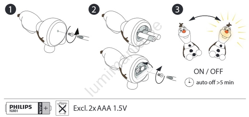 Philips 71768/08/16 - LED Kinderlamp DISNEY FROZEN OLAF LED/0,3W/2xAAA sneeuwman