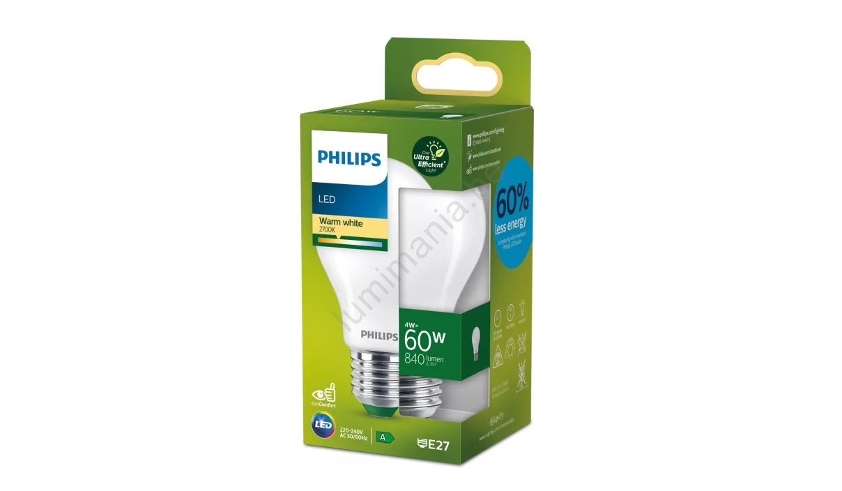 • Philips ULTRAEFFICIENT LED-lamp A60 E27/4W/230V 2700K