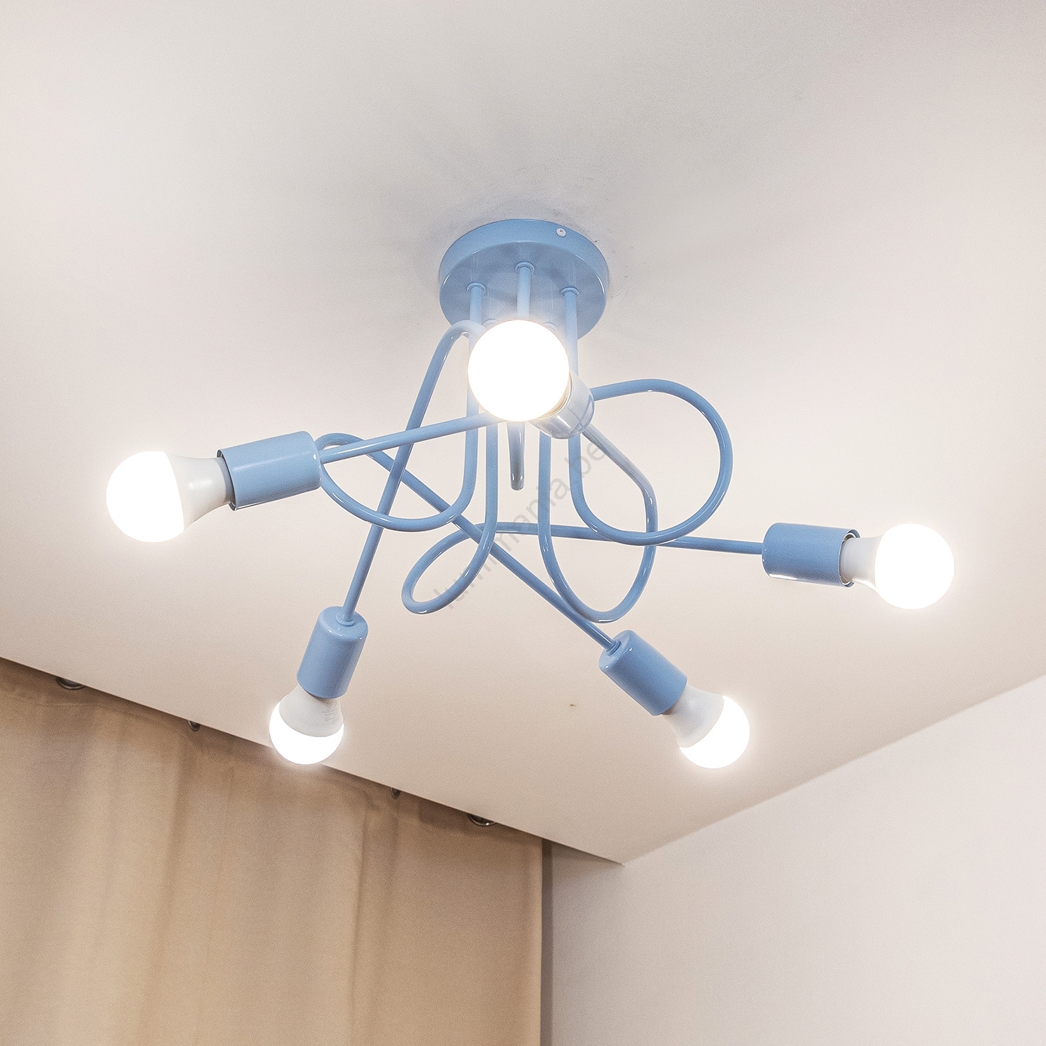 Plafondlamp OXFORD 5xE27/15W/230V blauw kenmerkt een mooi en functioneel ontwerp.  Voor het licht is een lamp met E27 fitting geschikt. Hier kunt u andere lampen tegen voordelige prijzen kopen. U heeft een interessante aanwinst voor uw woning.