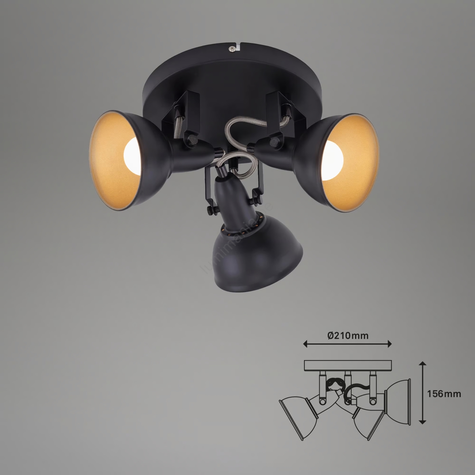 Plafondspot 3xE14/40W/230V zwart kenmerkt een mooi en functioneel ontwerp.  Voor het licht is een lamp met E14 fitting geschikt. Hier kunt u andere lampen tegen voordelige prijzen kopen. U heeft een interessante aanwinst voor uw woning.