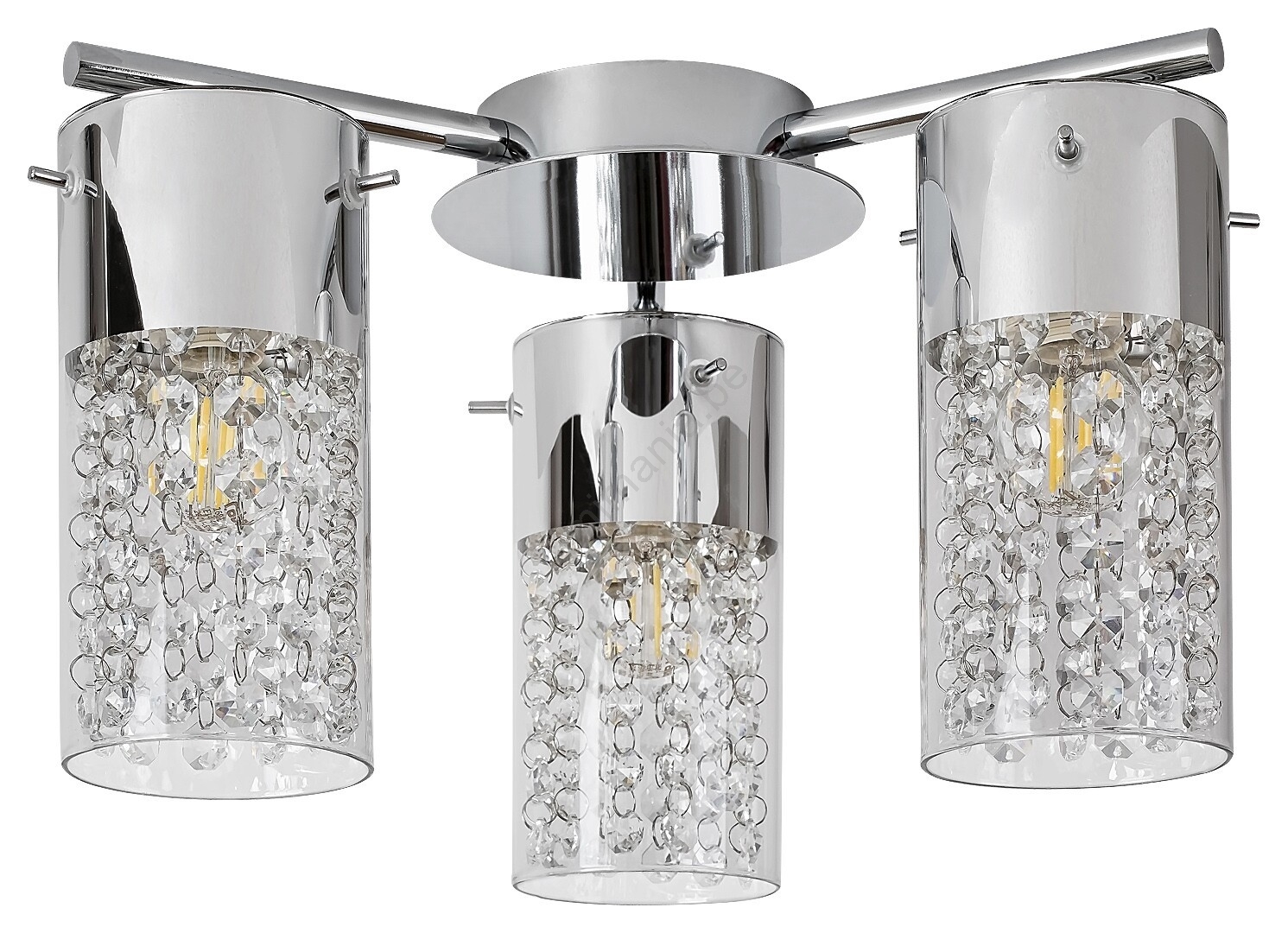 De Niagara plafondlamp voor de badkamer met 3 lampen, die een klassieke stijl uitstraalt, wordt een opvallend element in uw badkamerinrichting. Dit elegante model biedt sfeerverlichting voor uw avondritueel voor het slapengaan. De plafondlamp, bestaande uit een metalen armatuur in chromen kleur en transparante lampenkappen, is geschikt voor 3 lampen met een maximaal vermogen van 40W per stuk. Het type fitting is E14. De 3 lampenkoppen hangen aan chromen draagstangen die uitsteken uit een ronde decoratieve basis. De Niagara lamp is verfraaid met decoratieve kristalelementen onder de glazen kappen, die doen denken aan een waterval – zoals de naam van de lamp al suggereert. De IP44-classificatie van deze lamp garandeert bescherming tegen het binnendringen van voorwerpen groter dan 1 mm en tegen spatwater uit alle richtingen. De afmetingen van deze badkamer plafondlamp zijn: breedte 335 mm, afstand tot het plafond 215 mm, installatie diameter 100 mm. Dit model wordt geleverd zonder lichtbronnen.