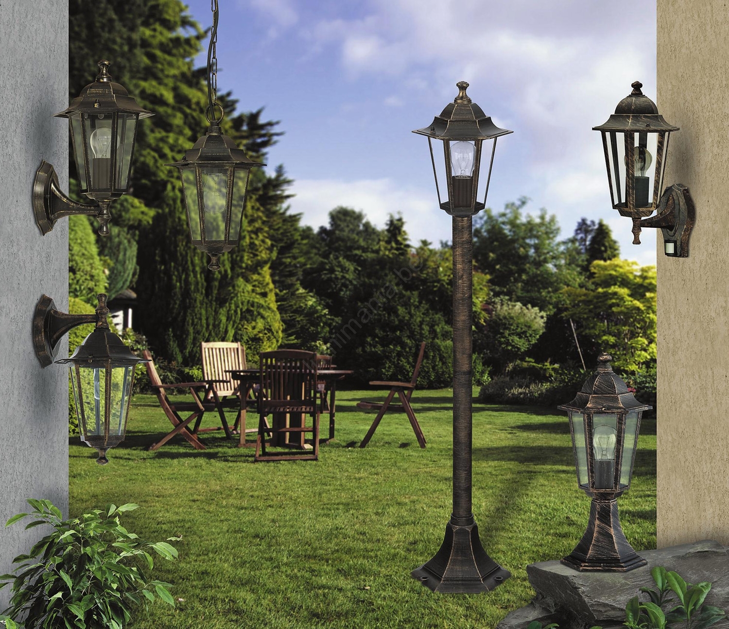 • Buitenlamp in antiek gouden kleur.