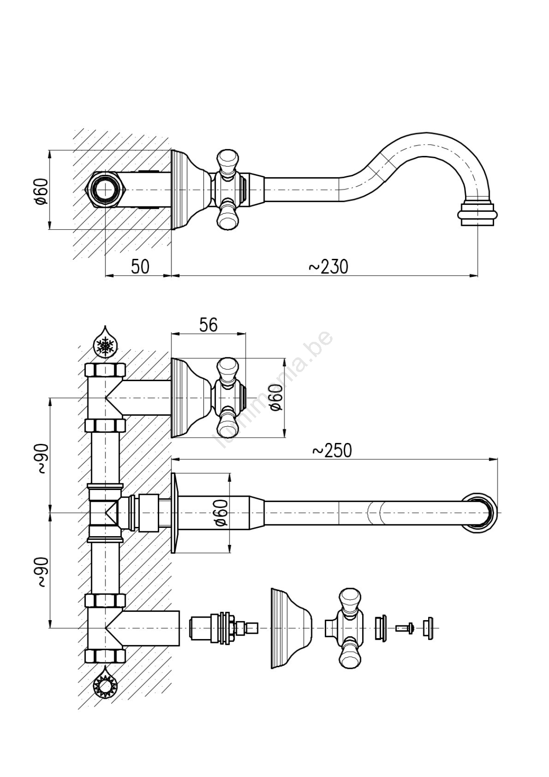 • De kraan is uitgerust met keramische cartridges 1/2".