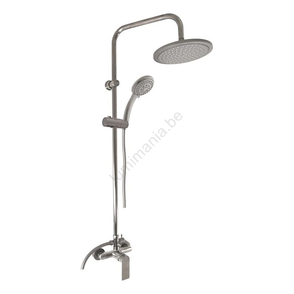 • Set bevat: douchemengkraan, kunststof handdouche met 5 standen (Ø 100 mm), kunststof hoofddouche (Ø 200 mm), metalen doucheslang (1500 mm), douchestang.