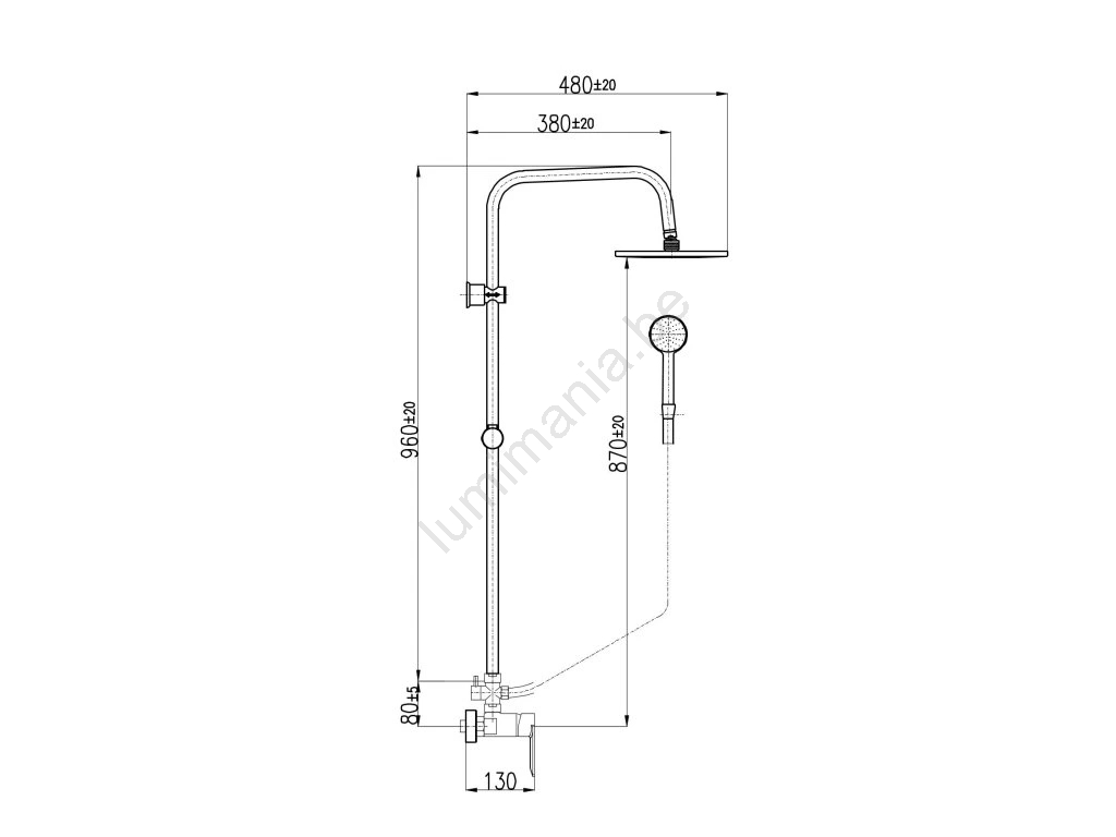 • Set bevat: douchemengkraan, kunststof handdouche met 5 functies (Ø 100 mm), kunststof hoofddouche (Ø 200 mm), metalen doucheslang (1500 mm), douchestang.