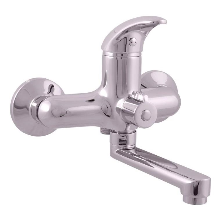 • Wandgemonteerde badkraan met platte draaibare uitloop.