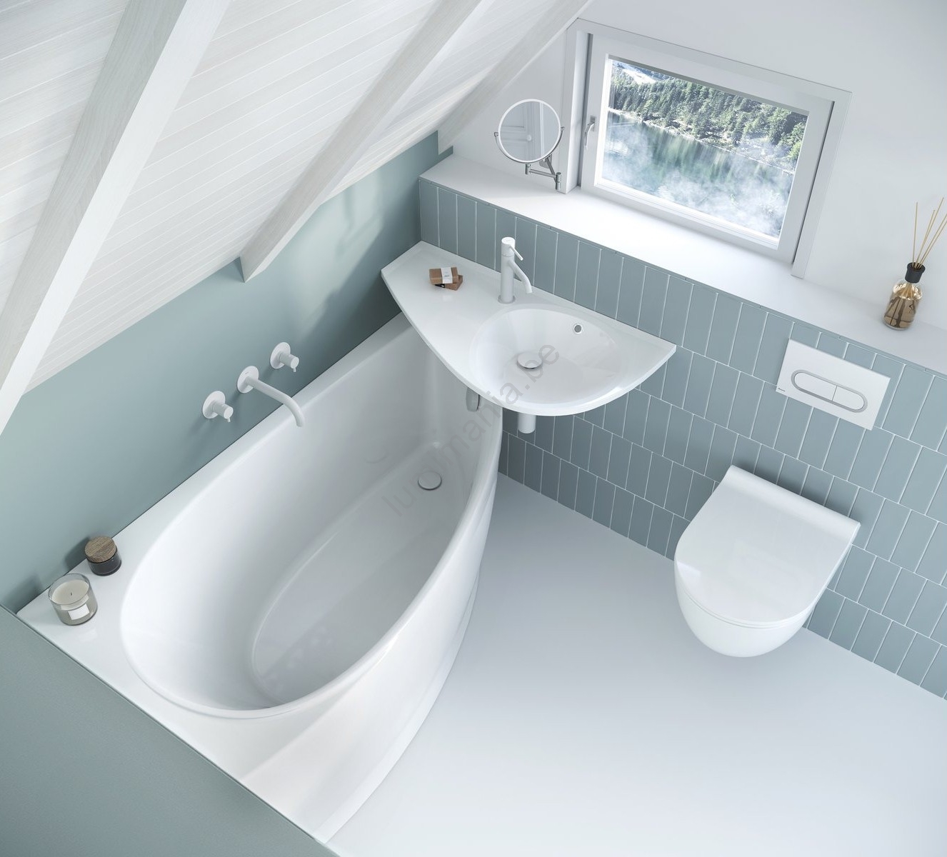 • De afmetingen van de wastafel zijn 85 x 45 cm, waardoor installatie ook in smallere ruimtes mogelijk is, bijvoorbeeld boven het bad Avocado.