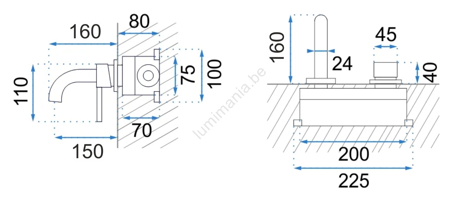 REA-B8652 - Wastafelmengkraan voor inbouw LUNGO geborsteld goud