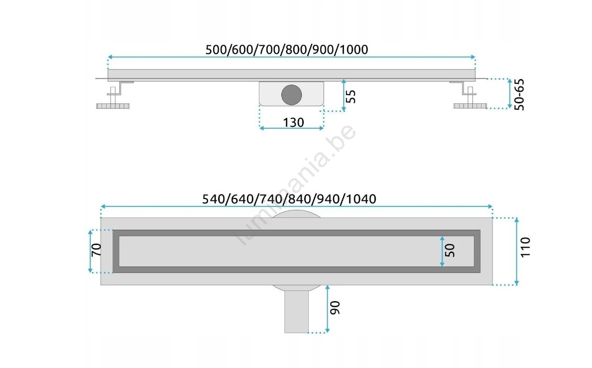 • Dankzij de hoogteverstelbare poten (50–65 mm) kan de afvoer eenvoudig worden aangepast aan verschillende vloersituaties.