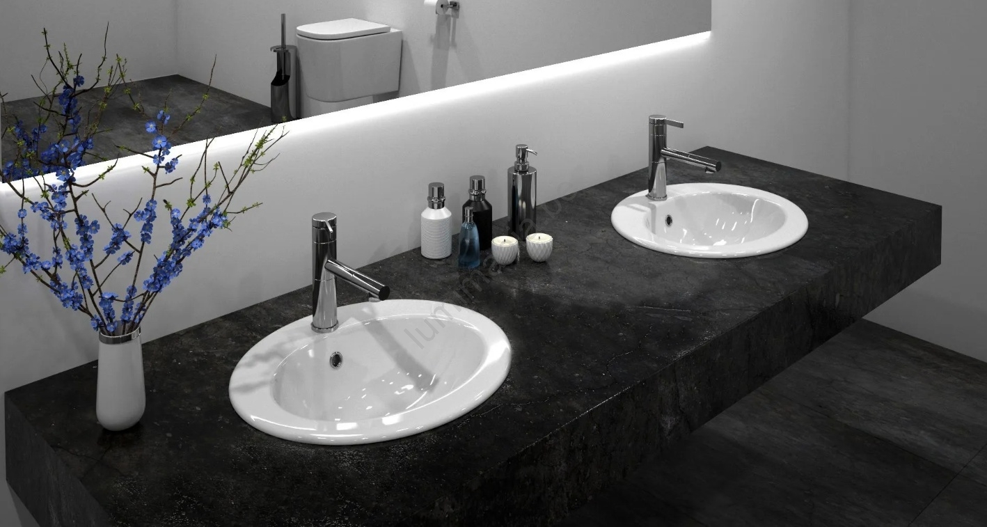 • Moderne en elegante inbouwwastafel met overloop.