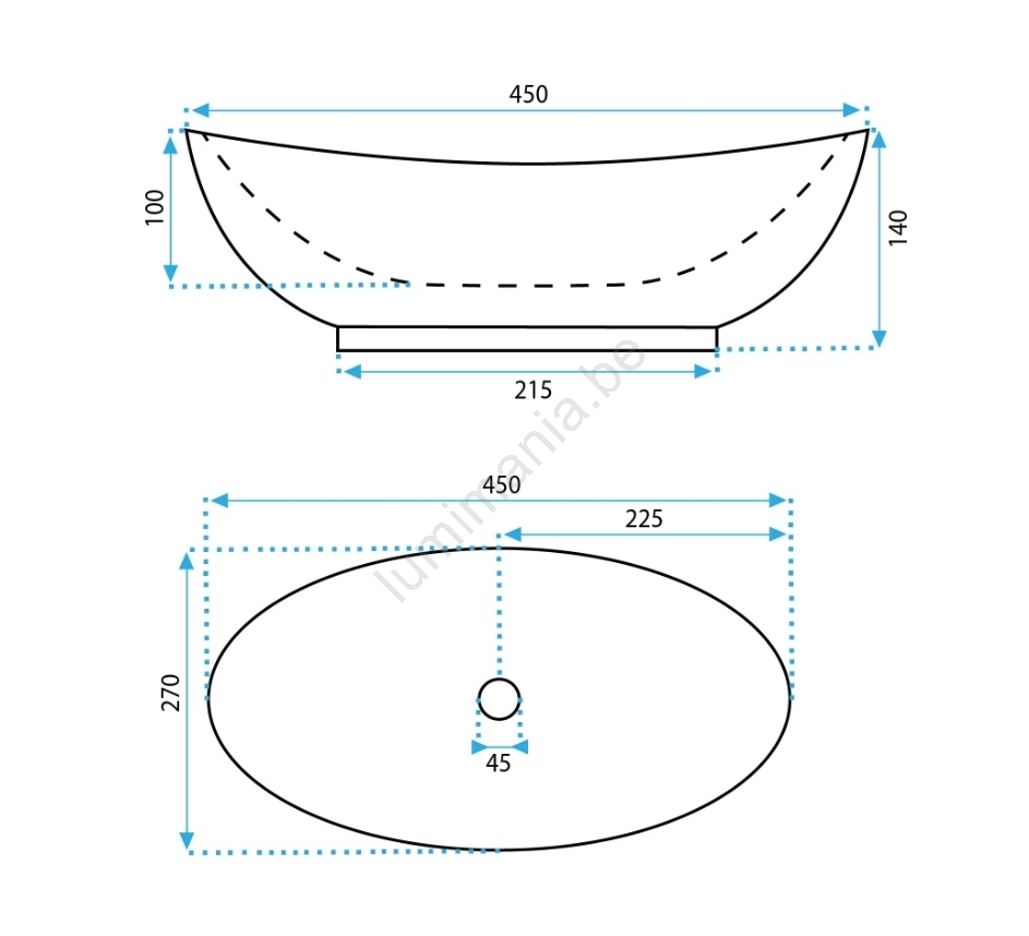 REA-U6802 - Opzetwastafel KATE 27x45 cm keramiek/glanzend wit