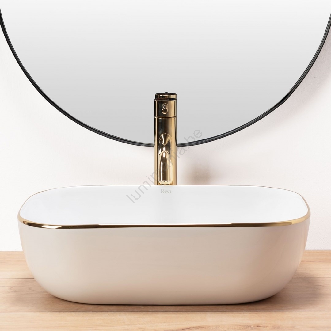 • REA-U8736 - Opbouwwastafel BELINDA 33,5x46,5 cm keramiek/wit/goud