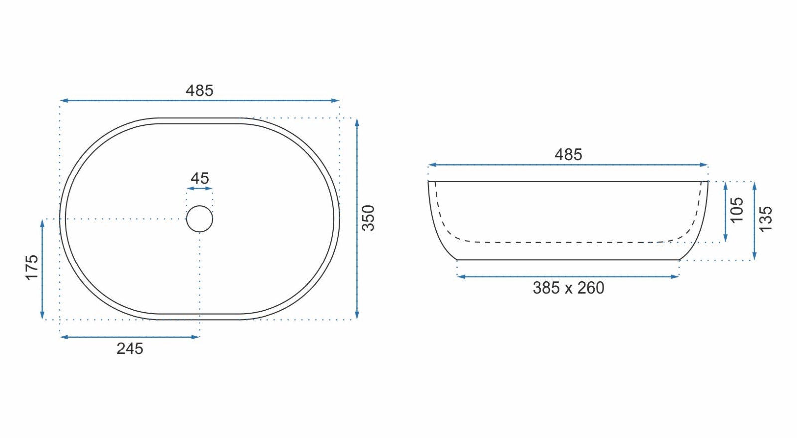REA-U9888 - Opzetwastafel LARA 35x48,5 cm keramiek/steenlook