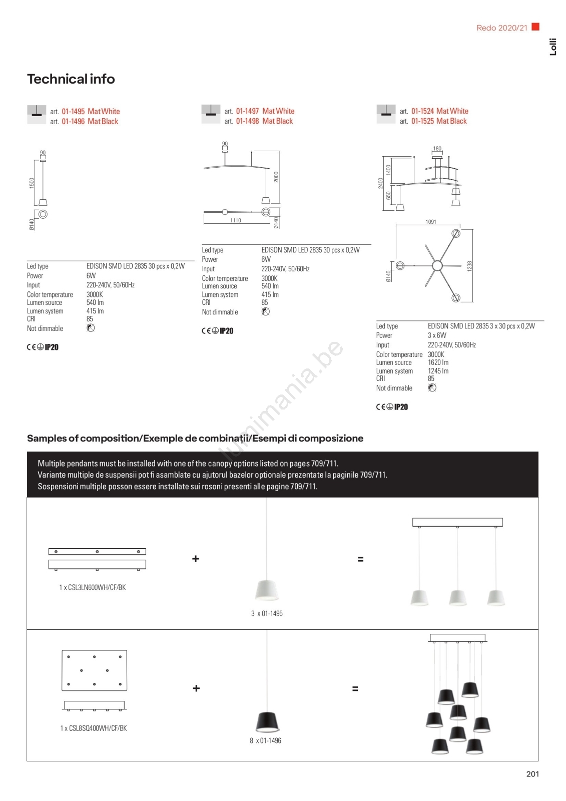 • Redo 01-1495 - LED-hanglamp aan kabel LOLLI LED/6W/230V Ø 14 cm wit