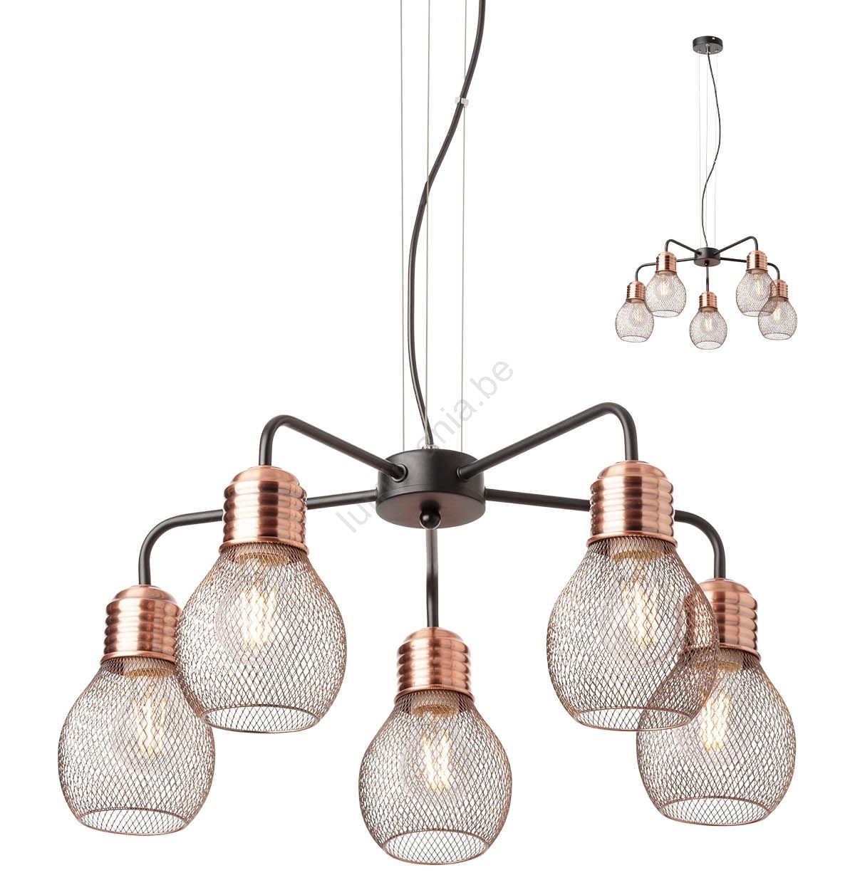 Redo 01-1580 - Pendellamp met kabel EDISON 5xE27/42W/230V Ø 53 cm zwart/koper kenmerkt een mooi en functioneel ontwerp.  Voor het licht is een lamp met E27 fitting geschikt. Hier kunt u andere lampen tegen voordelige prijzen kopen. U heeft een interessante aanwinst voor uw woning.