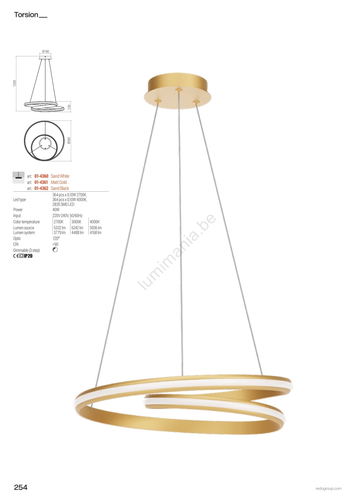 • Redo 01-4361 - LED-dimbare hanglamp aan kabel TORSION LED/40W/230V 2700/3000/4000K CRI 90 Ø 56 cm goudkleurig