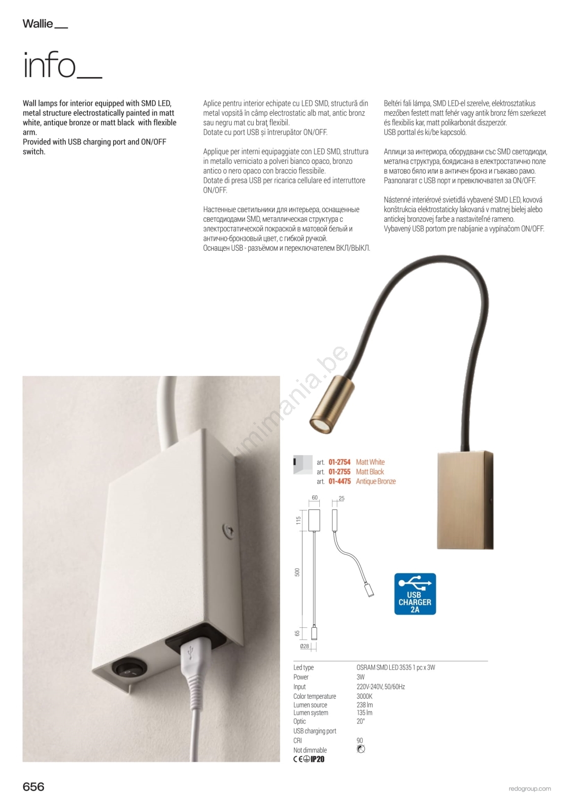Redo 01-4475 - WALLIE LED flexibele leeslamp 3W/230V USB CRI 90 bronskleurig