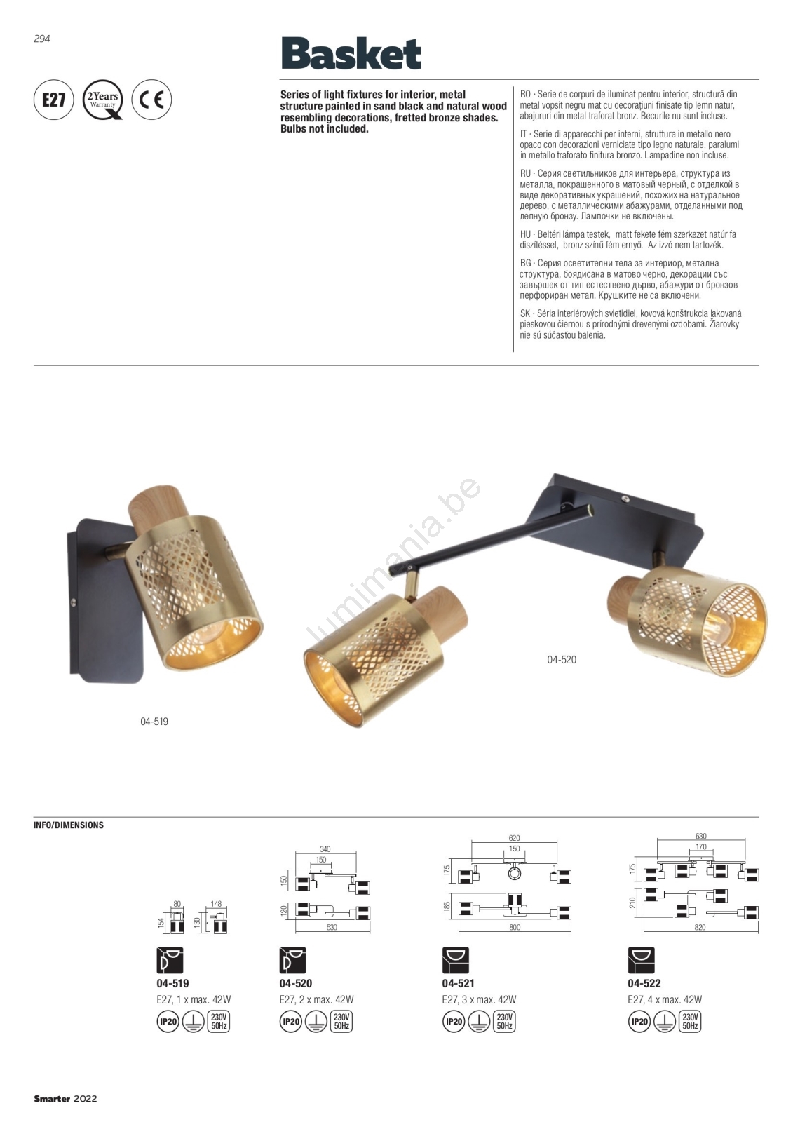 Redo 04-521 - Opbouwlamp BASKET 3xE27/42W/230V brons kenmerkt een mooi en functioneel ontwerp.  Voor het licht is een lamp met E27 fitting geschikt. Hier kunt u andere lampen tegen voordelige prijzen kopen. U heeft een interessante aanwinst voor uw woning.