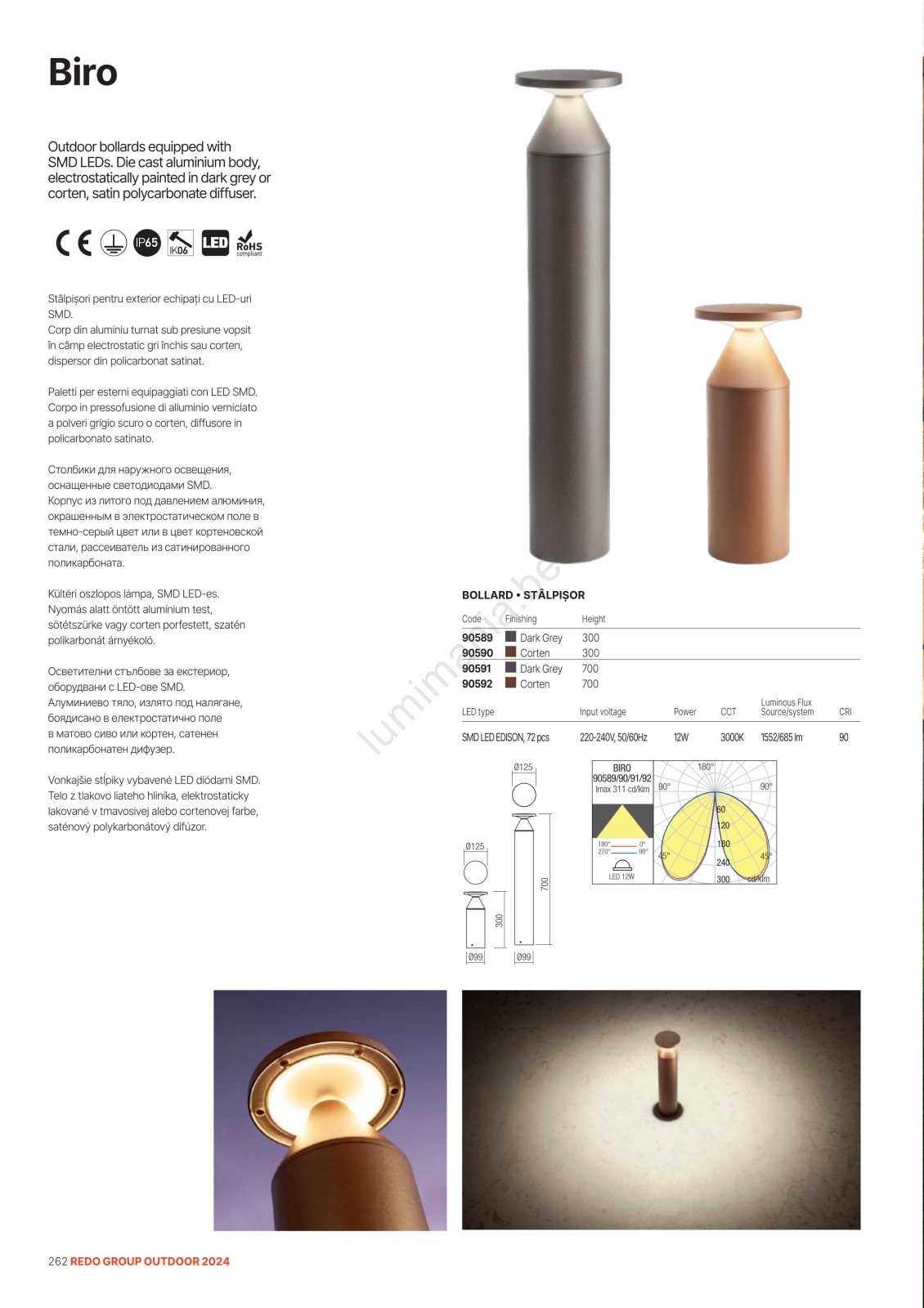 • Redo 90589 - LED buitenlamp BIRO LED/12W/230V 3000K 30 cm CRI 90 IP65 antraciet