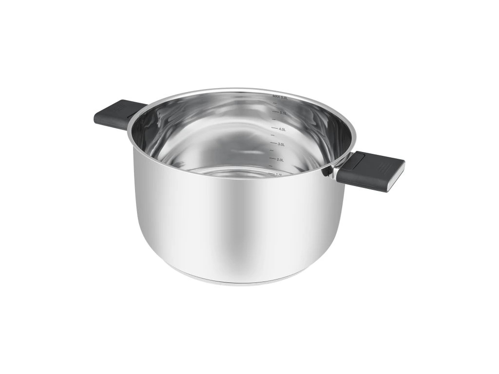 • De deksel heeft een innovatieve greep met twee standen voor veilig optillen en ruimtebesparing.