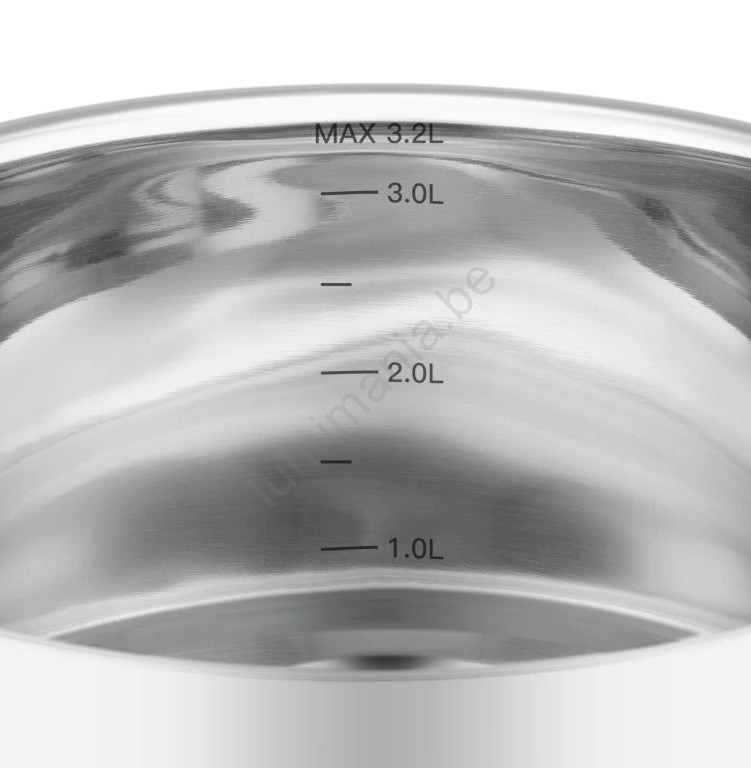• Binnenin de pan bevindt zich een praktische maataanduiding voor nauwkeurig afmeten van vloeistoffen.