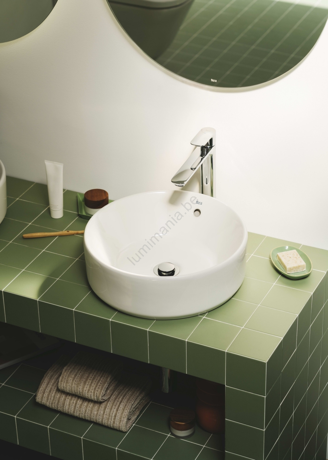 • De wastafel is bedoeld voor plaatsing op een blad, wat flexibele plaatsing en combinatie met verschillende soorten badkamerbladen mogelijk maakt.
