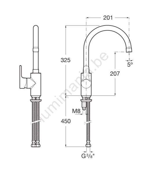 • Eenhendel keukenkraan met hoge druk en draaibare uitloop.