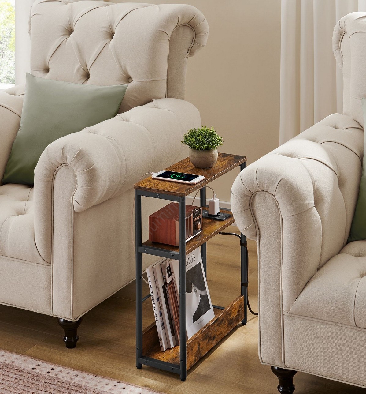 • Bijzettafel met ingebouwd stopcontact en USB-poorten ROD bruin/zwart
