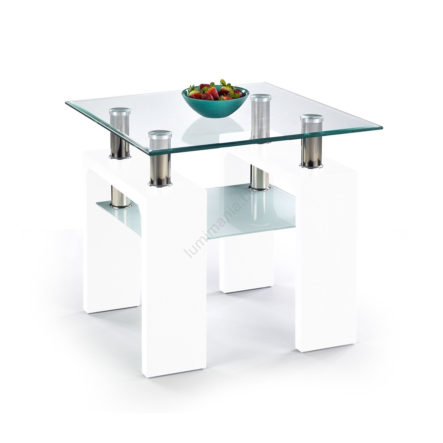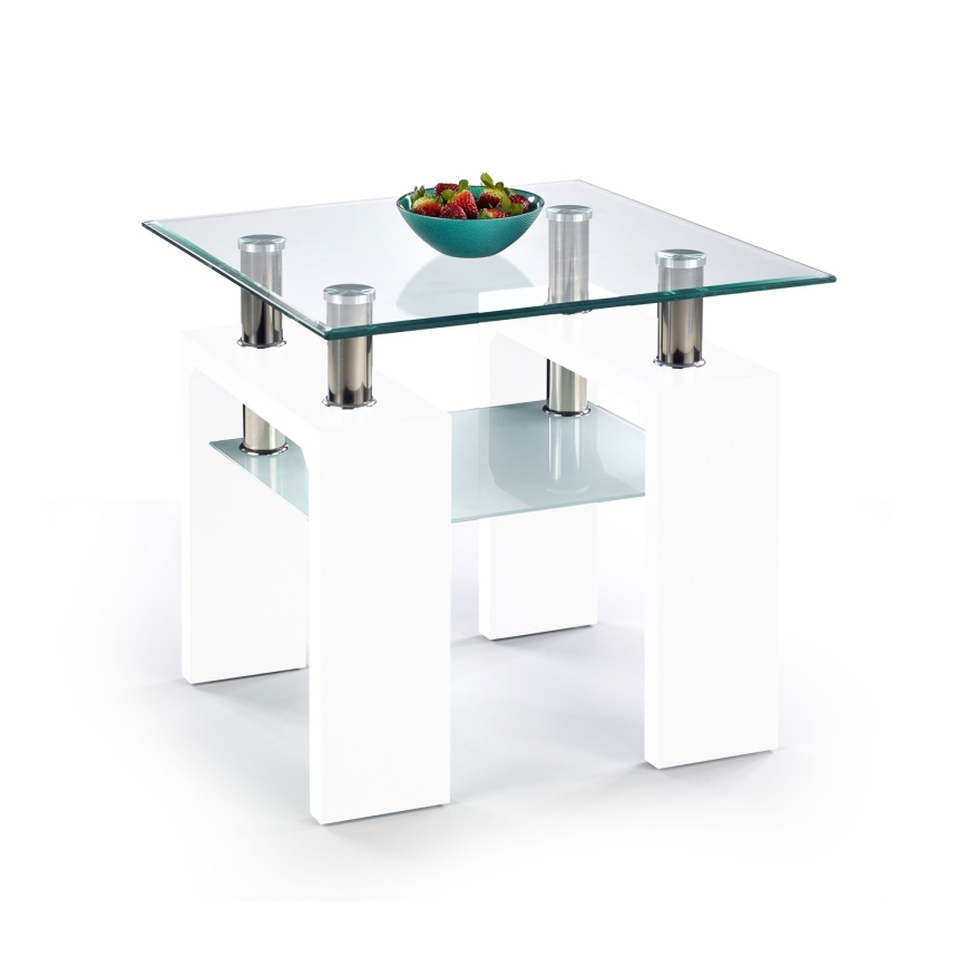 • Het tafelblad van helder gehard glas geeft het interieur een lichte en luxueuze uitstraling.