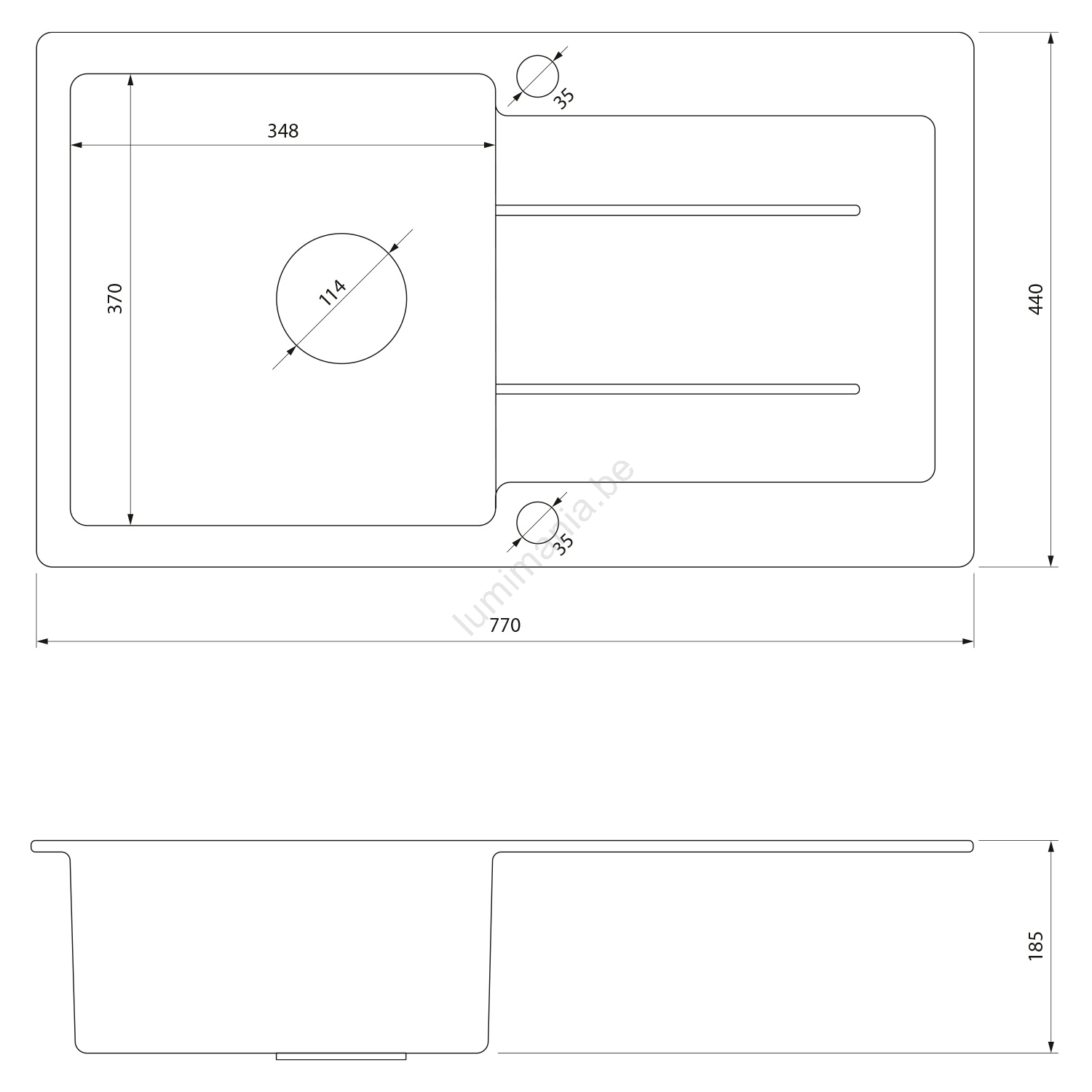 • Bij levering inbegrepen: afvoer en sifon met aftakking voor vaatwasser of wasmachine.
