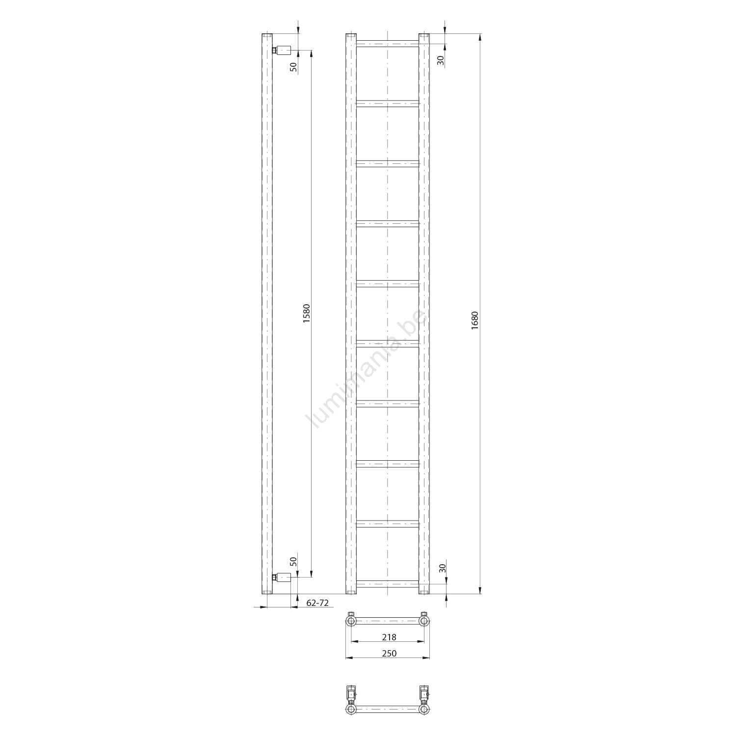 Sapho - Badkamerradiator DINA, 282 W, 25 x 168 cm, mat zwart