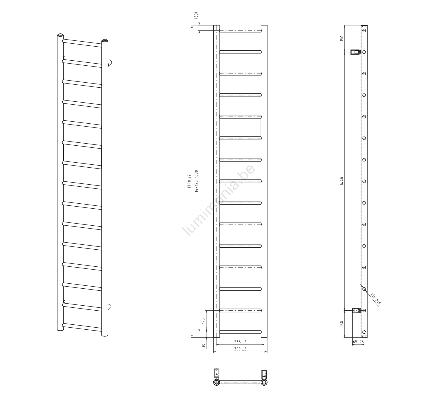 Sapho - Badkamerradiator DINA 174x30 cm wit