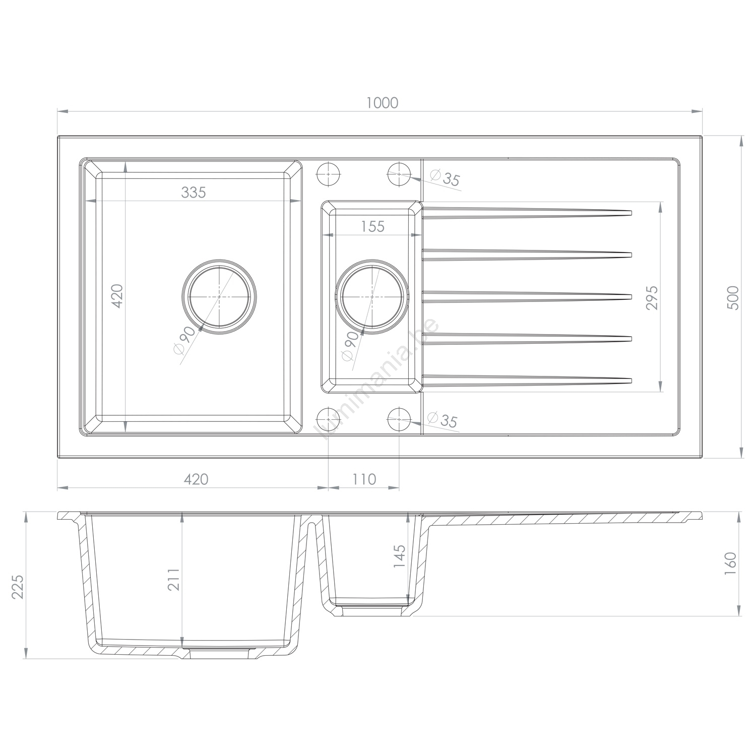 • De spoelbak is vervaardigd uit graniet en beschikt over een afdruipgedeelte.