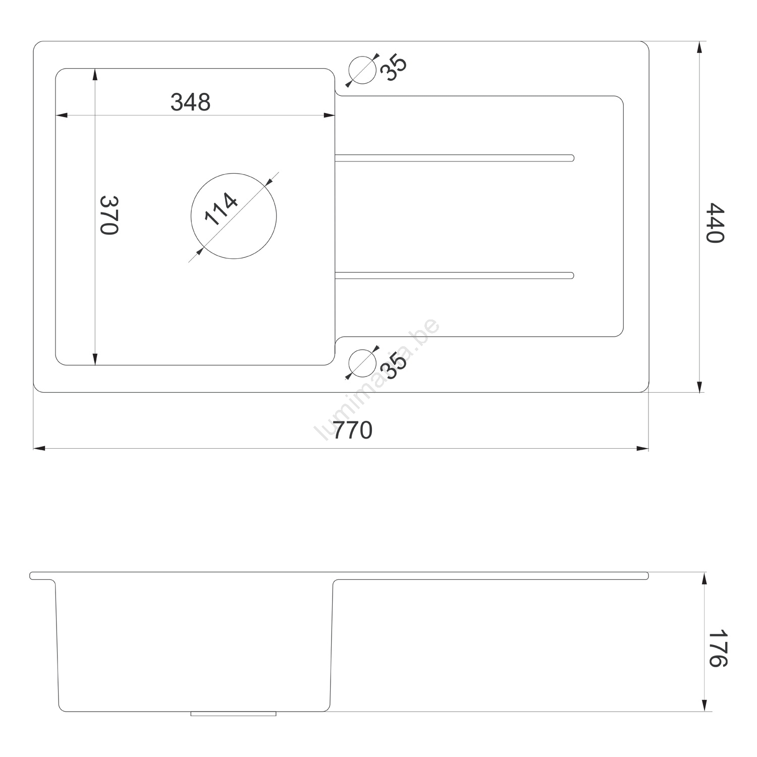 • De spoelbak is gemaakt van graniet en heeft een geïntegreerd afdruipgedeelte.