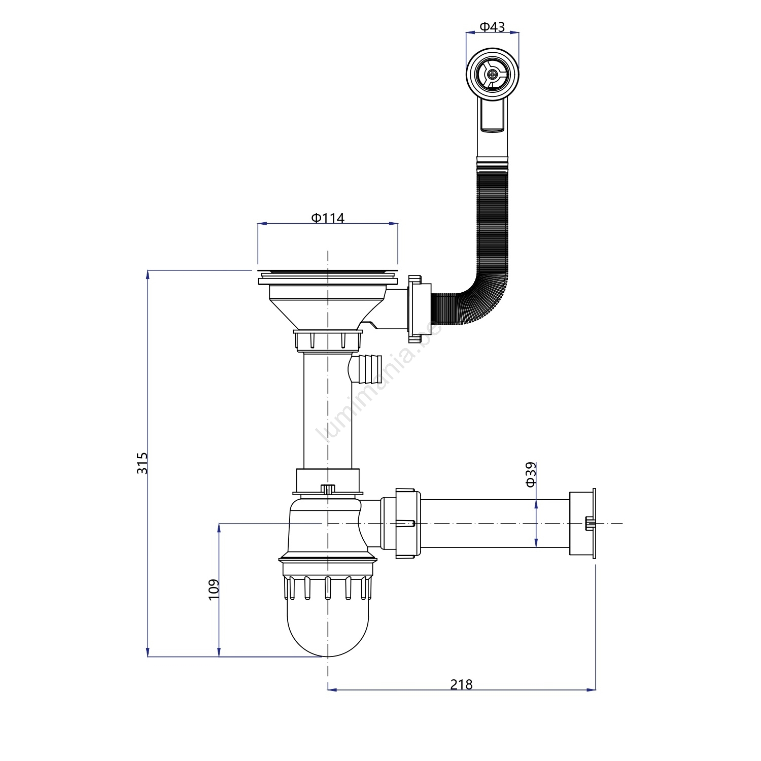 • Is geschikt voor opbouwmontage en bevat een zeefafvoer met sifon.