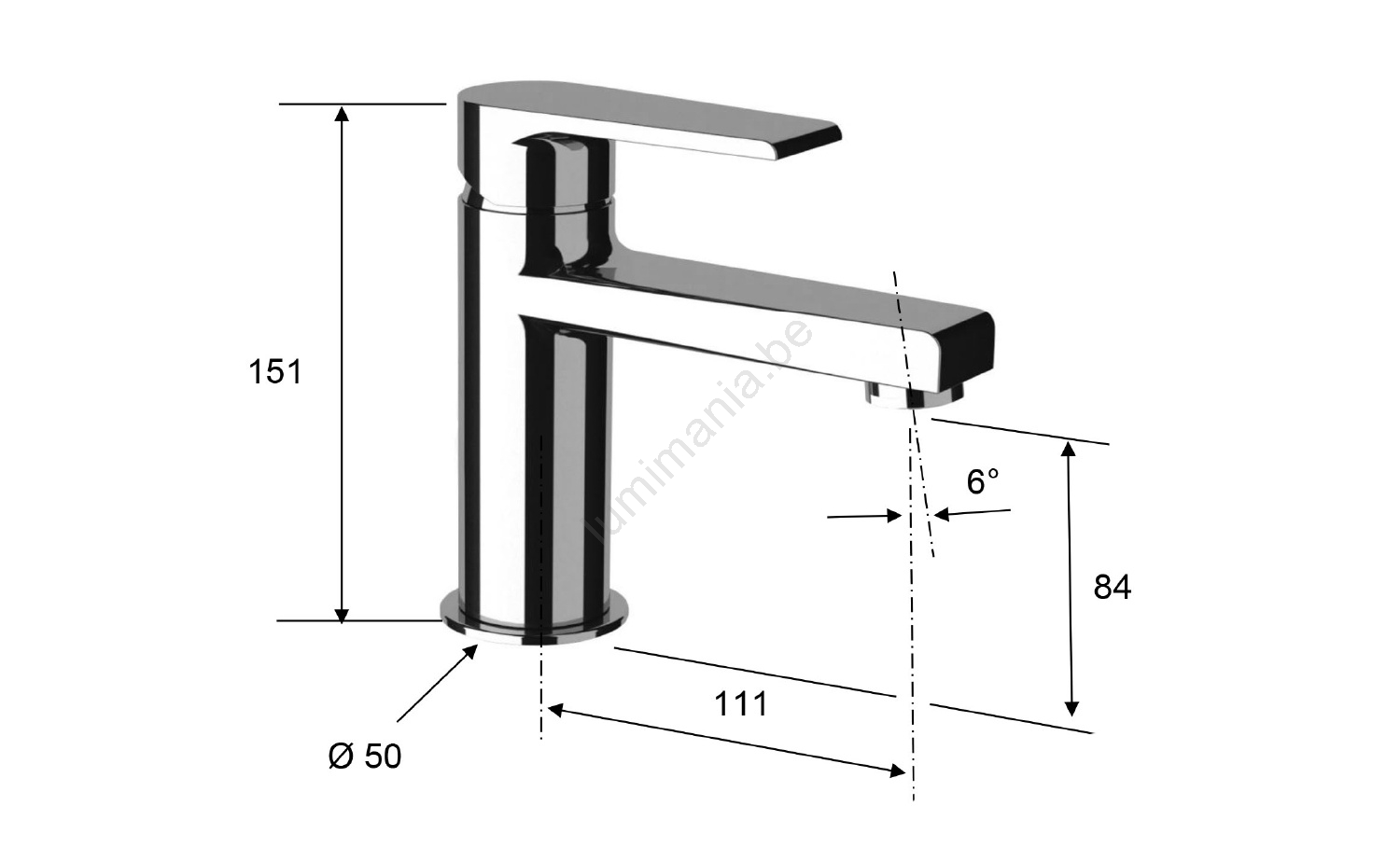 • Het ontwerp wordt versterkt door een robuuste hendel die perfect aansluit op de vorm van de uitloop.