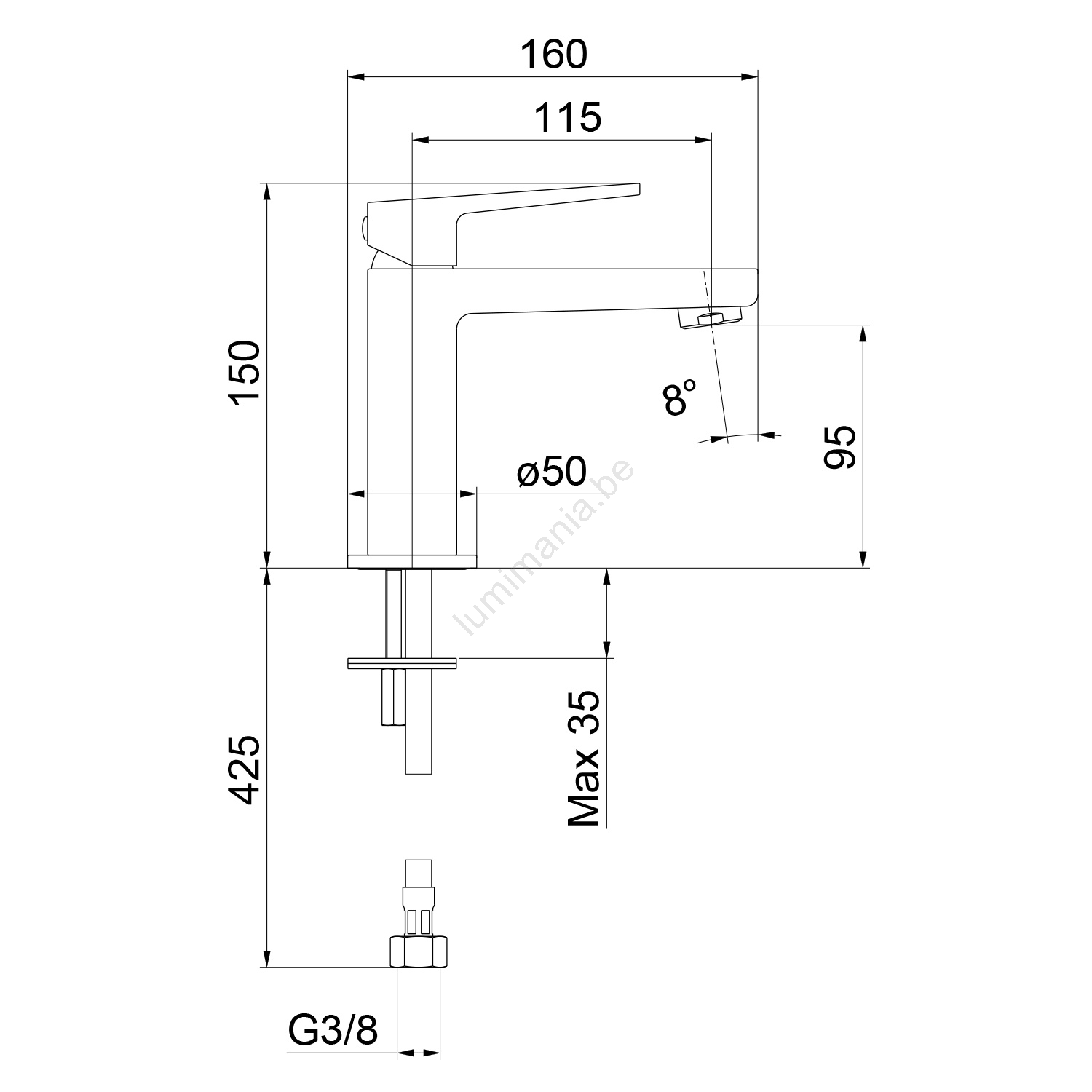 • De montage is op het wastafelblad (staande montage) en de bediening verloopt via een hendel voor eenvoudige regeling van temperatuur en waterstroom.