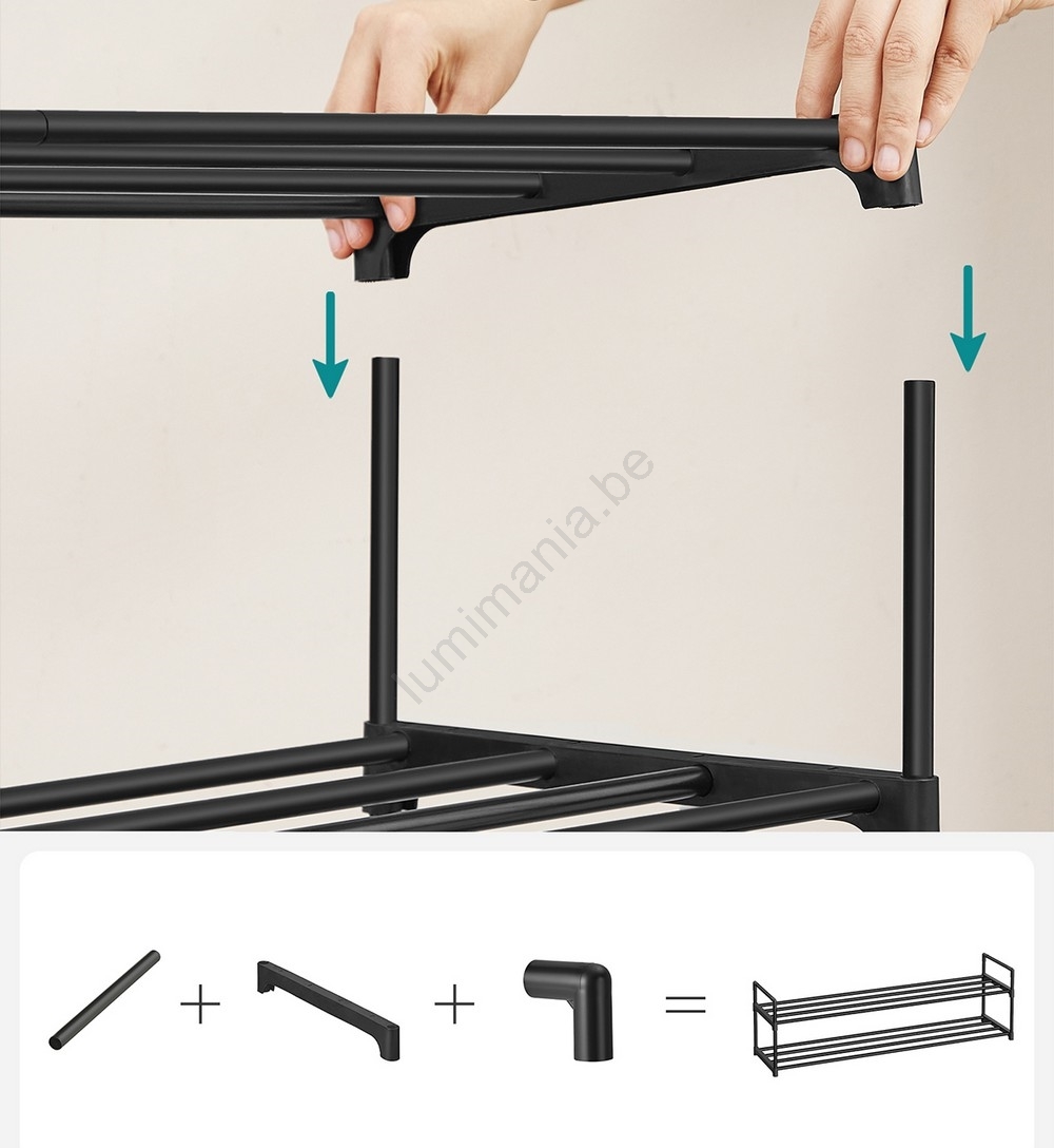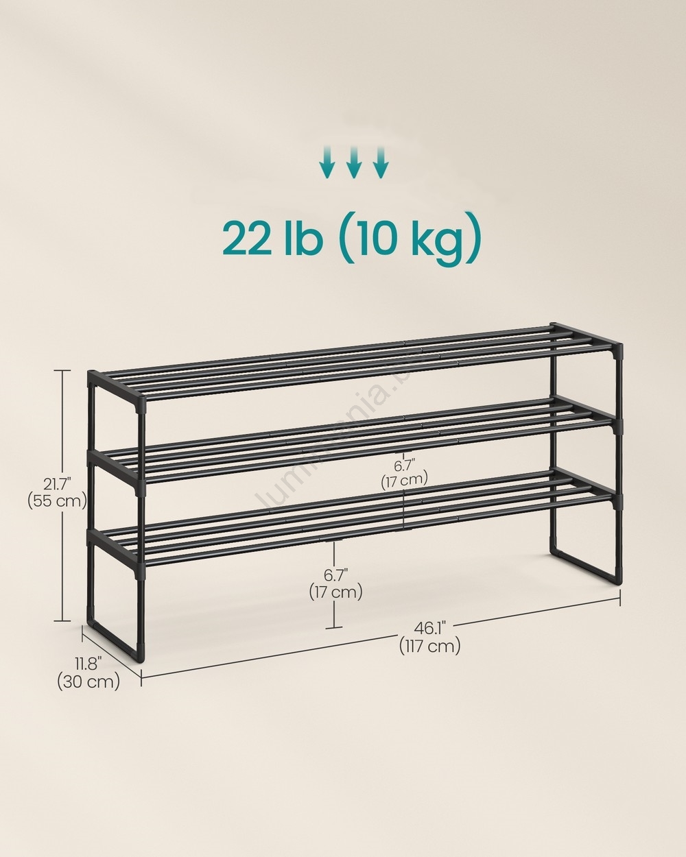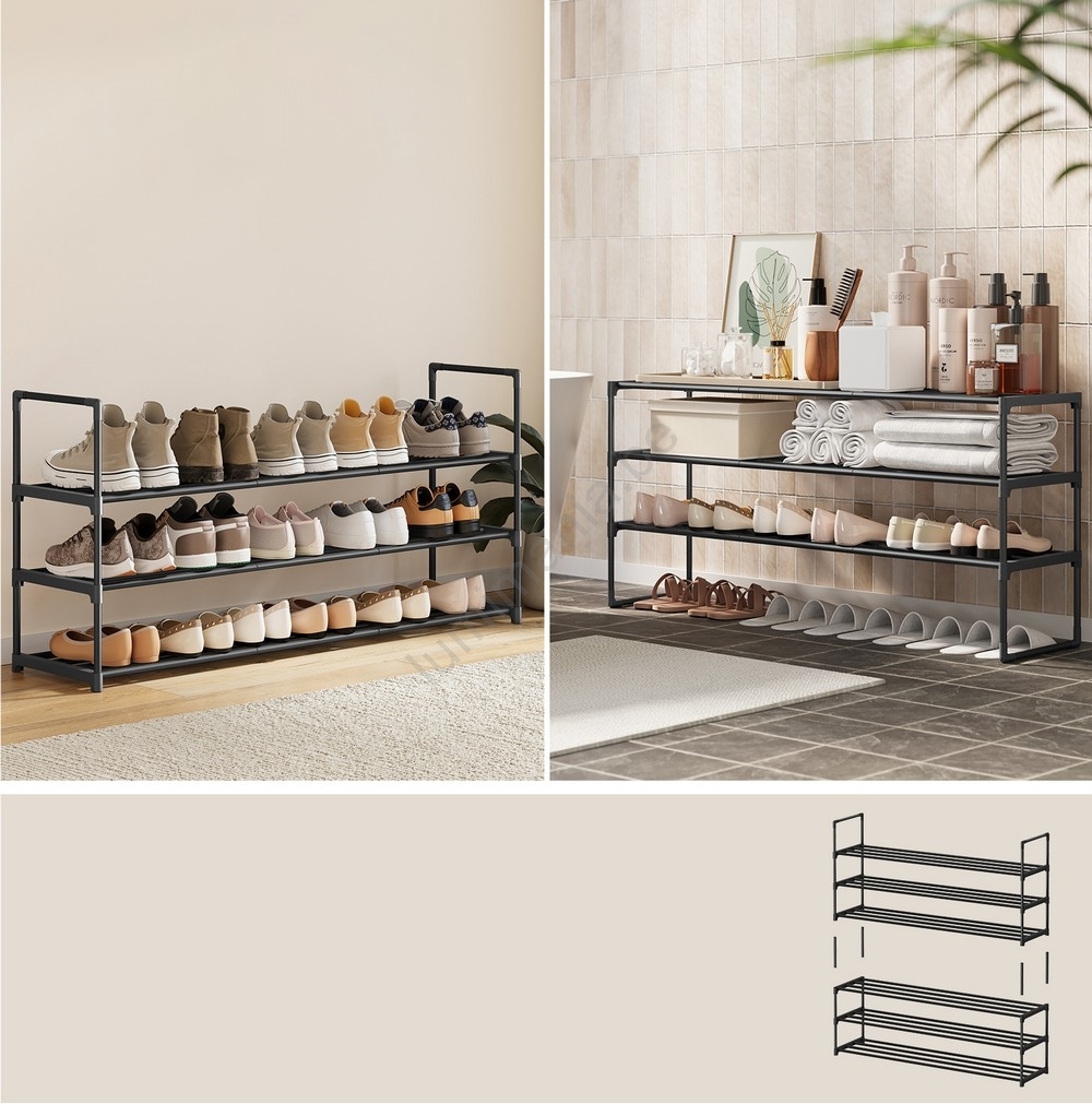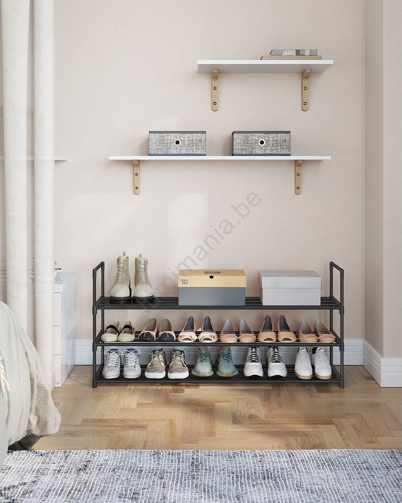 • Dankzij zijn slanke vorm neemt deze 3-laagse schoenenkast weinig vloeroppervlak in beslag en biedt toch voldoende opbergruimte voor 15 paar schoenen.